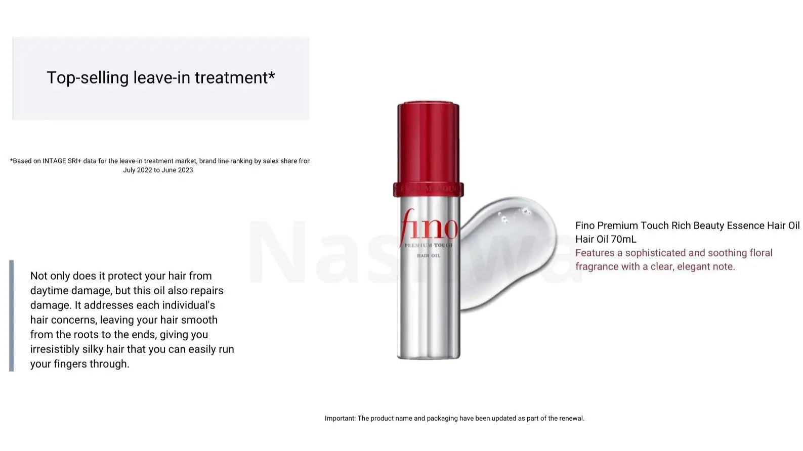Shiseido FINO Hair Oil is a lightweight, nourishing hair serum formulated with high-quality ingredients. This luxurious hair oil penetrates deep into the hair to intensely nourish, strengthen, and repair it. The result? Silky-soft, smooth, and radiant hair—free from frizz and dryness. Contents 70 ml